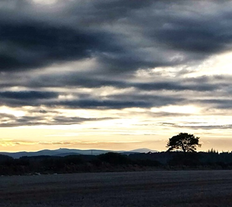 Wednesday: One of the features of living in Aberdeenshire is what we call big skies. The landscape and the light seem to provide a huge canvas, and sunrise and sunset can be quite spectacular. This is from the edge of the forest where we walk regularly. That’s the edge of the Highlands on the horizon. Advent is a time for enlarged thinking, for far horizons, lifting up our heads because redemption draws near and God is greater than our fears. “God is light, and in him there is no darkness at all.”